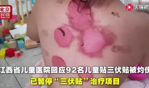 7月12日至13日,92名兒童在接受江西省兒童醫(yī)院“三伏貼”治療后,出現(xiàn)了不同程度的皮膚瘙癢、灼痛感、起水泡等不良反應(yīng)癥狀,甚至有兒童隨后開(kāi)始持續(xù)發(fā)燒。