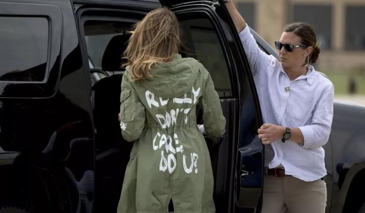 美國第一女兒伊萬卡曬娃風(fēng)波還未平,第一夫人梅拉尼婭又在衣服上暗暗“搞事”。當(dāng)?shù)貢r間21日,美國第一夫人梅拉尼婭到德州某非法移民兒童收容中心探望,然而在準備啟程前往時,在安德魯斯空軍基地被拍到穿了印有“I really don’t care, ...