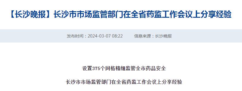 長沙市市場監(jiān)管部門在全省藥監(jiān)工作會議上分享經(jīng)驗