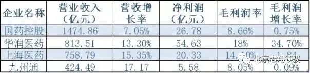 華潤醫(yī)藥、上海醫(yī)藥和九州通的營收分別為813億元、758億元和424億元,營增長率都為兩位數(shù)。